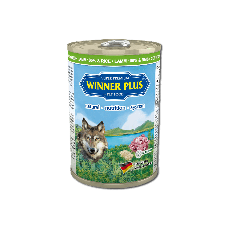 WINNER PLUS SUPER PREMIUM MENU met lam en rijst is een complete natvoeding bereid met vers lamsvlees van de beste kwaliteit en licht verteerbare rijst.