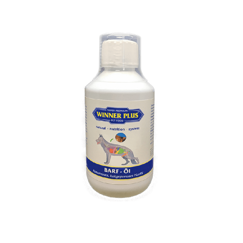 WINNER PLUS BARF Oil is een natuurlijke hennepolie die bij lage temperaturen wordt gewonnen en vervolgens mechanisch wordt gefilterd. Hennepolie levert essentiële vetzuren voor de hele stofwisseling en voor een gezonde huid.