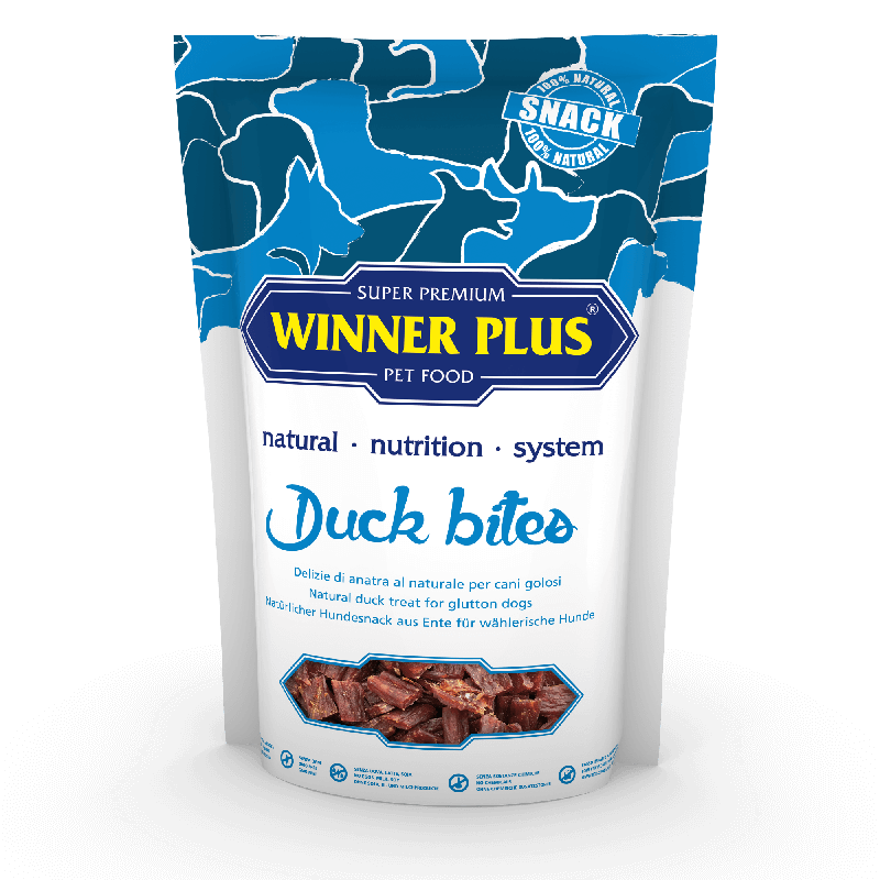 Natuurlijke eendensnacks voor honden die van lekker eten houden: natuurlijke en uitgebalanceerde aanvullende voeding voor honden, rijk aan eiwitten en vetten, bereid met uitsluitend zorgvuldig geselecteerd eendenvlees.