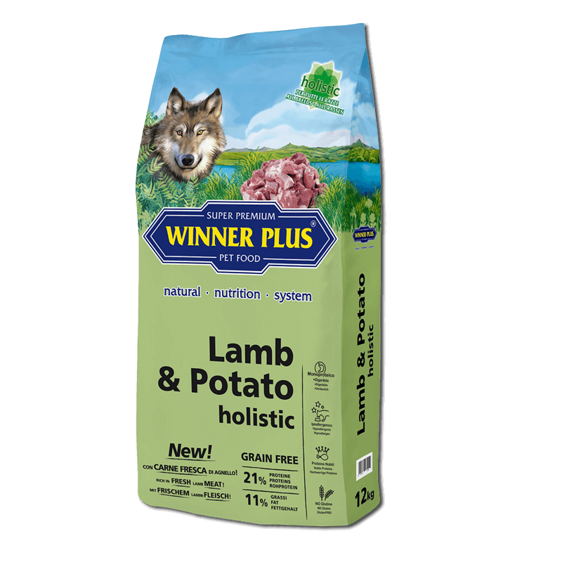 WINNER PLUS Lamb & Potato holistic is een zeer hoogwaardig volledig voer dat geschikt is voor de speciale hoge voedingsbehoeften van gevoelige honden van alle rassen.
