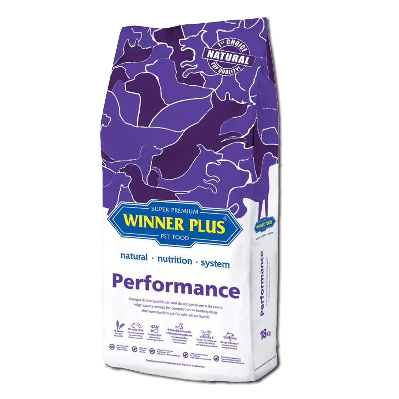WINNER PLUS Performance is een complete en glutenvrije voeding met een hoog gehalte aan hoogwaardige kip. Door het hoge gehalte aan kip en zalm is deze voeding ideaal voor werk- en sporthonden met een hogere energiebehoefte. Ook geschikt voor drachtige en zogende teven of zwakke en ondergewicht honden. Kip en de aanwezigheid van licht verteerbare zalm vormen een waardevolle bron van direct beschikbare eiwitten.